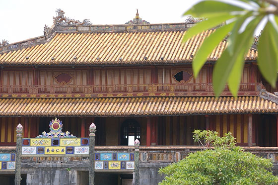 HUE', LA CITTA' IMPERIALE. La Porta Ngo Mon vista dal Palazzo di Thai Hoa